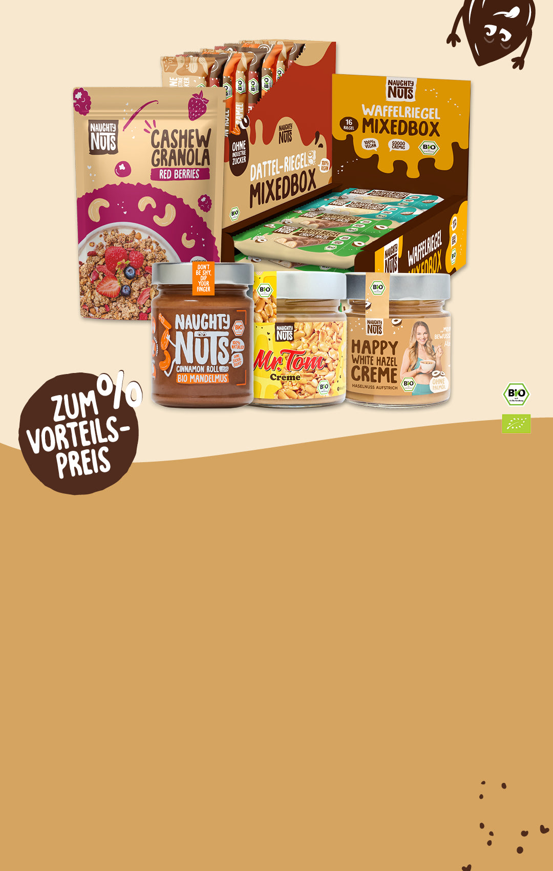 🎉 Unsere Einsteiger Pakete und Bundles sind dein perfekter Start bei Naughty Nuts! Entdecke unser Sortiment und finde deine neuen Lieblingssorten 🌰🍫