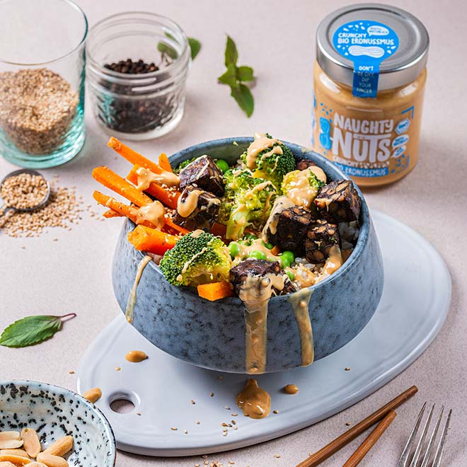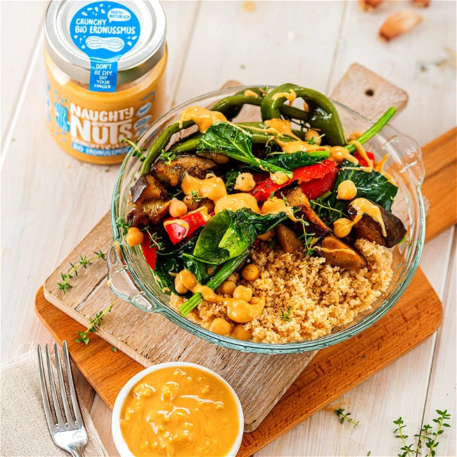 Mit einem absolut unwiderstehlich crunchigem Erlebnis überrascht Dich unser Bio Erdnussmus Crunchy, Naughty! Egal, ob Du Dein Nussmus lieber süß oder herzhaft, warm oder kalt, beim Backen oder Kochen genießt - Dein Erdnussmus Crunchy ist so vielfältig wie Du und schenkt Dir ganz nebenbei auch noch jede Menge Proteine!