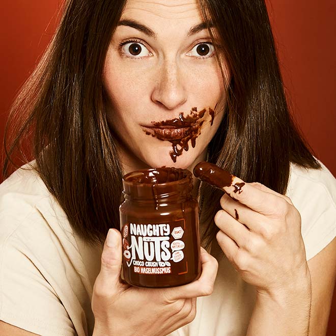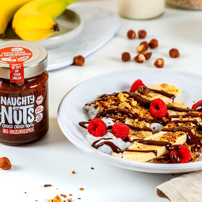 Unwiderstehlich schokoladig und das mit nur 4 Zutaten! Unser Choco Crush, aus leckeren Bio Haselnüsse kombiniert mit feinem Kakao und der Süße aus Datteln, setzt einen neuen Standard unter den Schokoaufstrichen. Und dabei enthält das Choco Crush 65% weniger Zucker als vergleichbare Produkte.