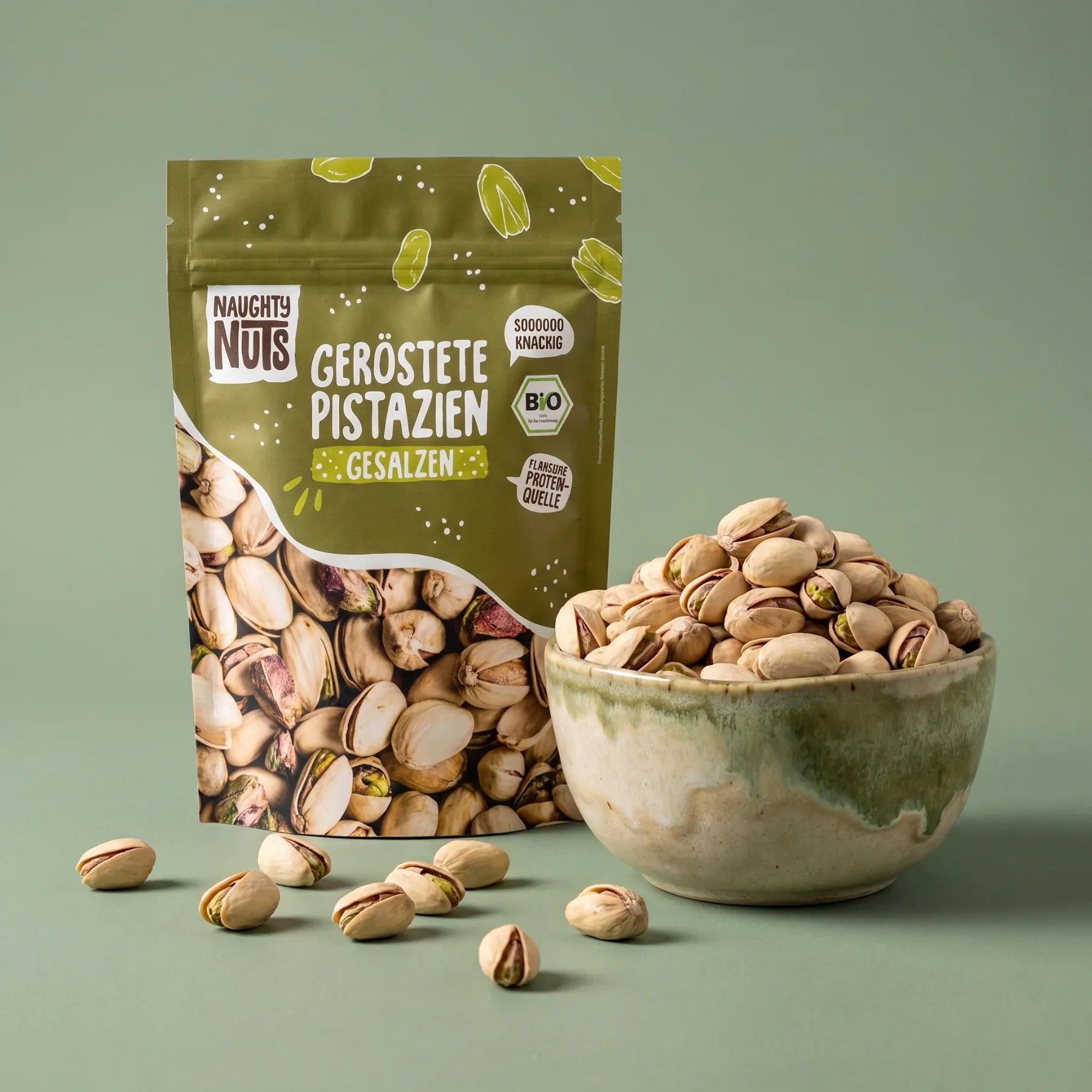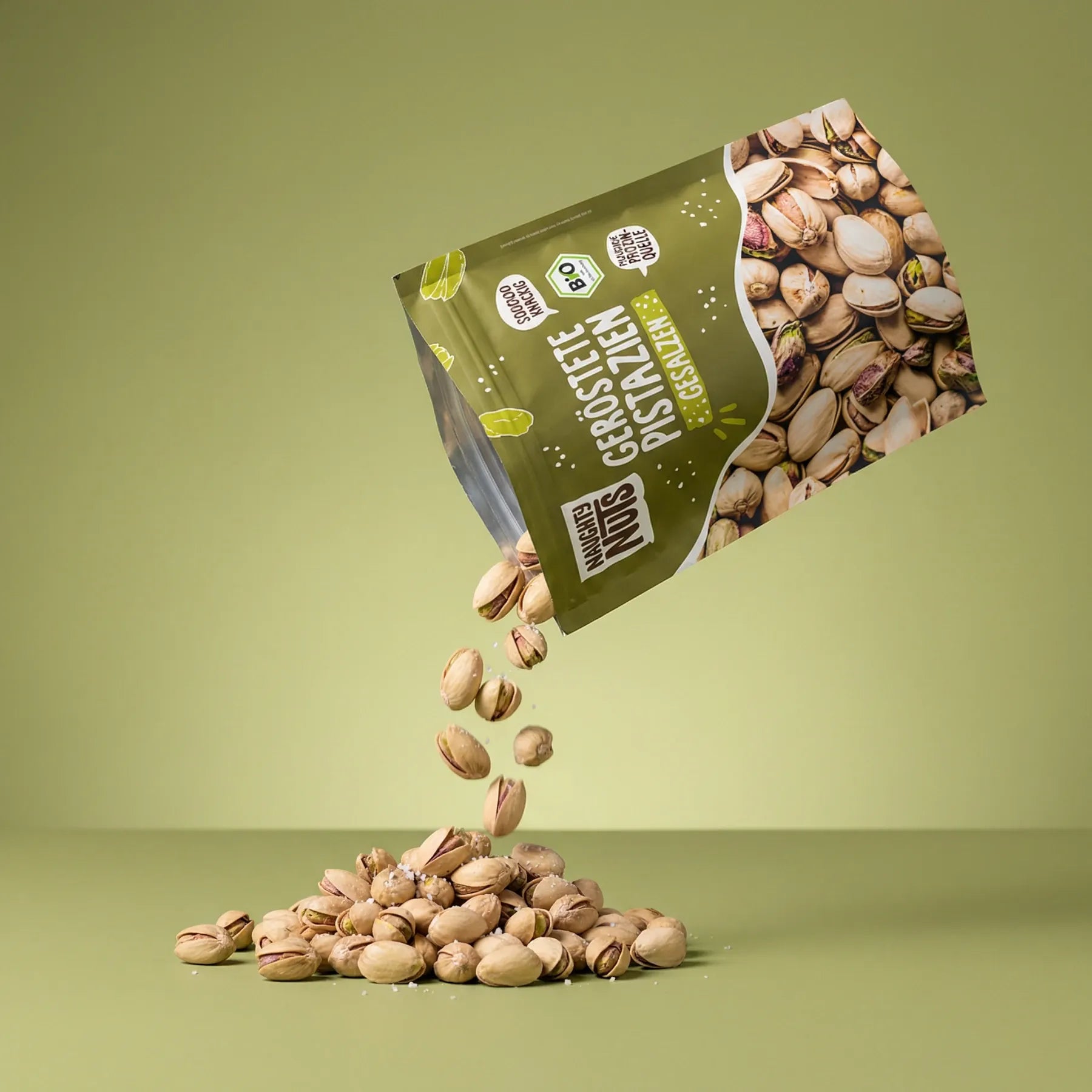 Knackige Bio-Pistazien in der Schale, schonend geröstet und fein gesalzen – perfekt für deine bewussten Snackmomente.